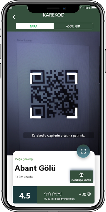 Gittiğin yerdeki Karekodu okut ve gezdikçe puan kazan.